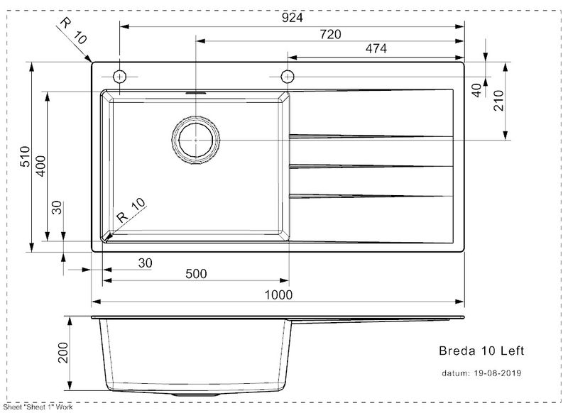 Tiefe der Spüle: 200 mm