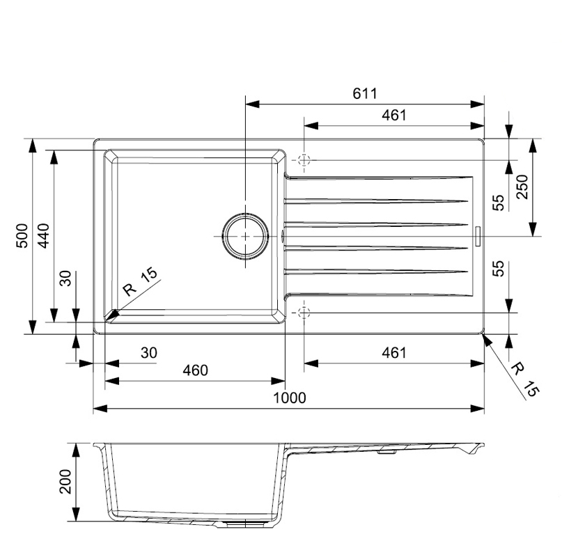 reversibel heißt: die Spüle läßt sich sowohl links als auch rechts herum einbauen; d. h. Sie können selbst entscheiden, ob Sie das Abtropfbecken auf der rechten oder auf der linken Seite haben möchten.