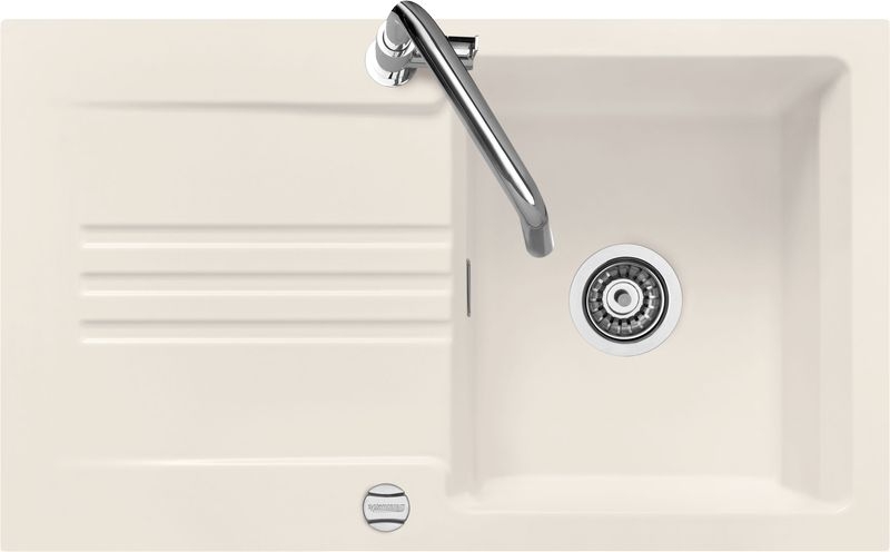 Hinweis: ist auf der oben stehenden Produktabbildung auf der Spüle ein runder Drehknebel zu sehen, handelt es sich um die Version mit Excenter-Betätigung. Eine eventuell abgebildete Armatur gehört nicht zum Lieferumfang.