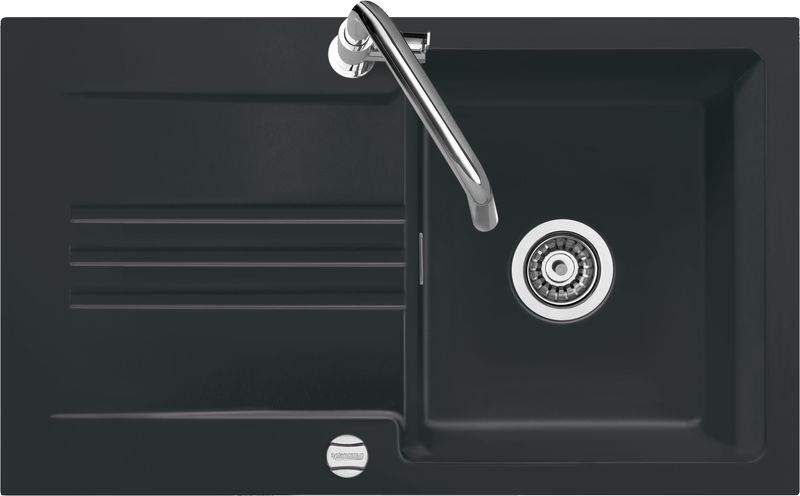 Hinweis: ist auf der oben stehenden Produktabbildung auf der Spüle ein runder Drehknebel zu sehen, handelt es sich um die Version mit Excenter-Betätigung. Eine eventuell abgebildete Armatur gehört nicht zum Lieferumfang.