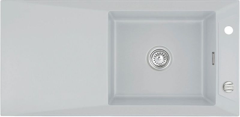 Hinweis: ist auf der oben stehenden Produktabbildung auf der Spüle ein runder Drehknebel zu sehen, handelt es sich um die Version mit Excenter-Betätigung. Eine eventuell abgebildete Armatur gehört nicht zum Lieferumfang.
