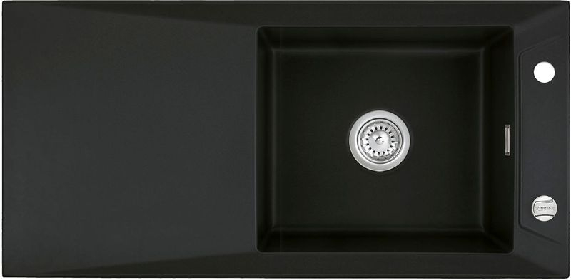 Hinweis: ist auf der oben stehenden Produktabbildung auf der Spüle ein runder Drehknebel zu sehen, handelt es sich um die Version mit Excenter-Betätigung. Eine eventuell abgebildete Armatur gehört nicht zum Lieferumfang.