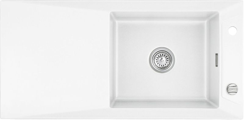 Hinweis: ist auf der oben stehenden Produktabbildung auf der Spüle ein runder Drehknebel zu sehen, handelt es sich um die Version mit Excenter-Betätigung. Eine eventuell abgebildete Armatur gehört nicht zum Lieferumfang.