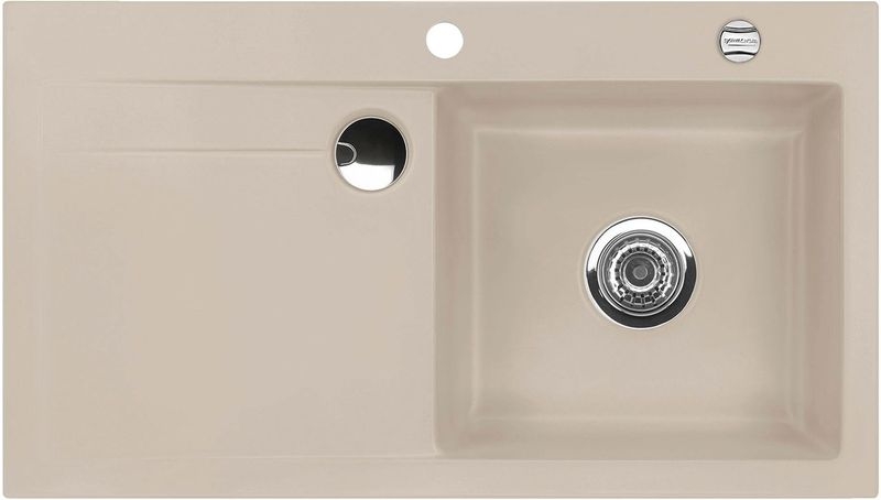 Hinweis: ist auf der oben stehenden Produktabbildung auf der Spüle ein runder Drehknebel zu sehen, handelt es sich um die Version mit Excenter-Betätigung. Eine eventuell abgebildete Armatur gehört nicht zum Lieferumfang.