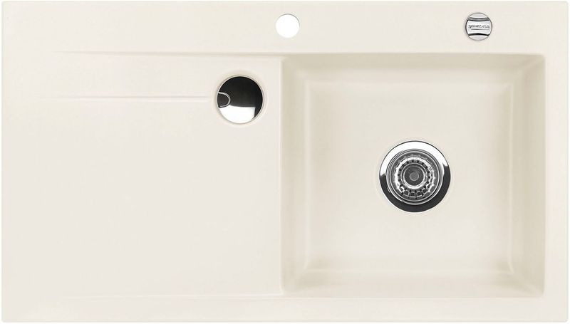Hinweis: ist auf der oben stehenden Produktabbildung auf der Spüle ein runder Drehknebel zu sehen, handelt es sich um die Version mit Excenter-Betätigung. Eine eventuell abgebildete Armatur gehört nicht zum Lieferumfang.