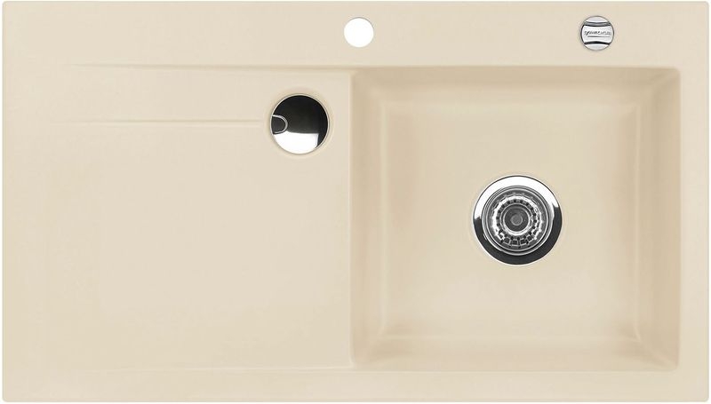 Hinweis: ist auf der oben stehenden Produktabbildung auf der Spüle ein runder Drehknebel zu sehen, handelt es sich um die Version mit Excenter-Betätigung. Eine eventuell abgebildete Armatur gehört nicht zum Lieferumfang.