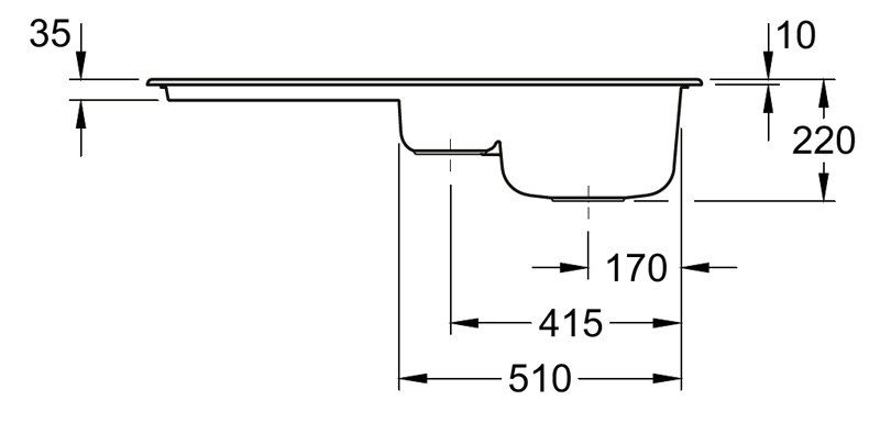 - Spülenmaße: L x B 1000 x 510 mm