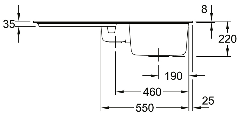 - diese Spüle ist nur als Einbau- bzw. Auflage-Spüle einbaubar; ein flächenbündiger Einbau oder der Einsatz als Unterbau-Spüle ist nicht möglich