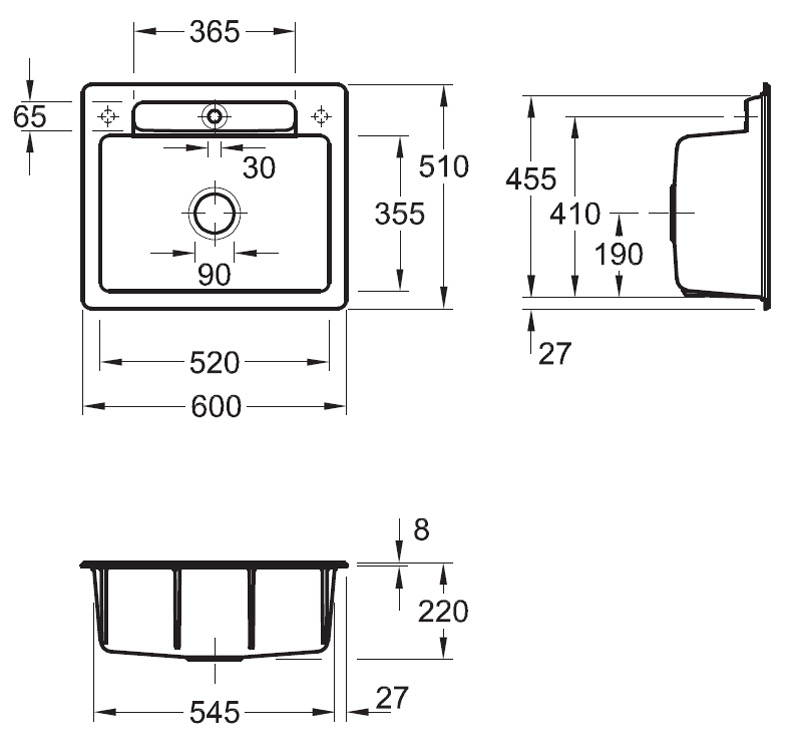 - Spülenmaße: L x B 510 x 520 mm