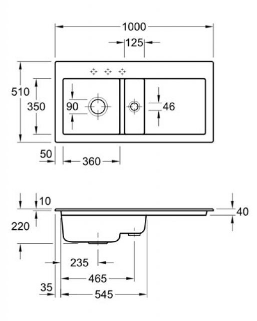 - diese Spüle ist nur als Einbau- bzw. Auflage-Spüle einbaubar; ein flächenbündiger Einbau oder der Einsatz als Unterbau-Spüle ist nicht möglich