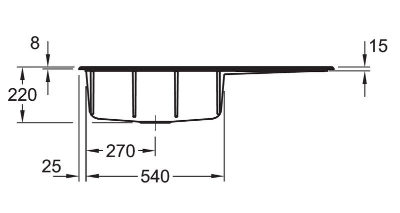- diese Spüle ist nur als Einbau- bzw. Auflage-Spüle einbaubar; ein flächenbündiger Einbau oder der Einsatz als Unterbau-Spüle ist nicht möglich