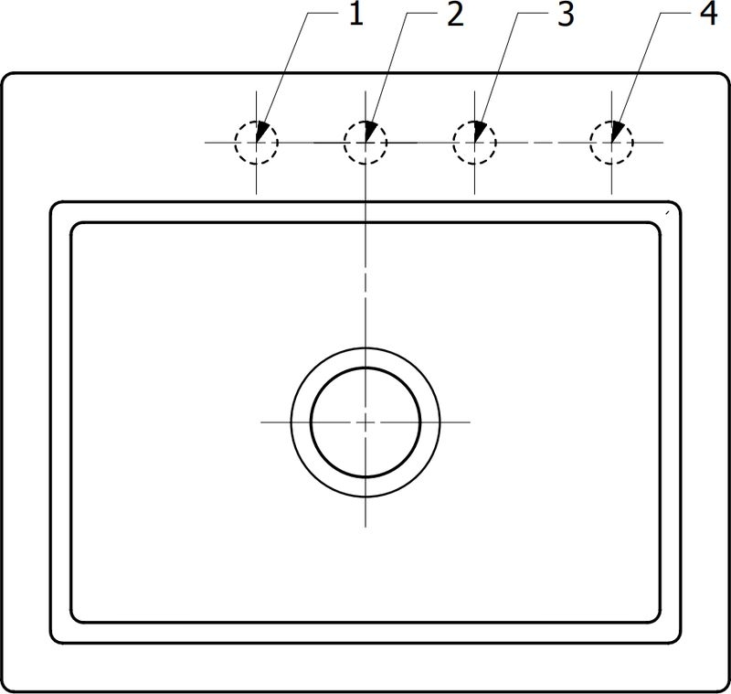 Option "Lochbohrungen durch Hersteller": Wenn Sie wünschen, dass aus Sicherheitsgründen die Lochbohrungen werksseitig vom Hersteller vorgenommen werden sollen, wählen Sie bitte diese Option. Hierfür benötigen wir von Ihnen die Nummern/Positionen des Hahnlochs/der Hahnlöcher, die V & B für Sie durchbohren soll. Bei der Spülenversion mit Handbetätigung benötigen Sie 1 Hahnlochbohrung für die Armatur, bei der Version mit Excenterbetätigung benötigen Sie 2 Lochbohrungen (Armatur und Excenter-Bedienung). Bitte beachten Sie hierzu die unten abgebildeten Maßzeichnungen, da die Positionen der Lochbohrungen bei reversiblen Spülen für die Becken-links und Becken-rechts-Versionen unterschiedlich sein können.