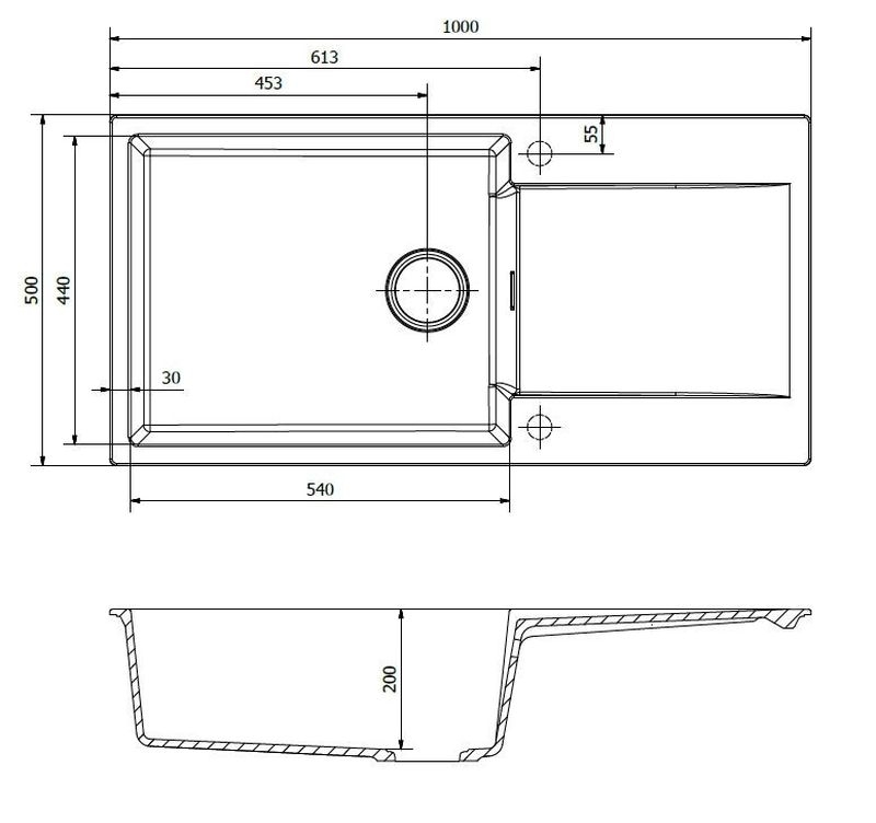 • Tiefe der Spüle: 200 mm