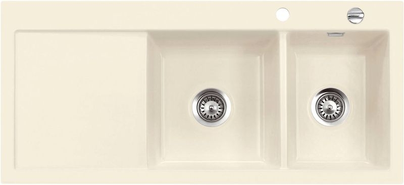 • 2 Becken; 1 Ablage (Becken rechts oder Becken links)