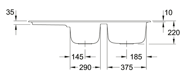 - diese Spüle ist nur als Einbau- bzw. Auflage-Spüle einbaubar; ein flächenbündiger Einbau oder der Einsatz als Unterbau-Spüle ist nicht möglich