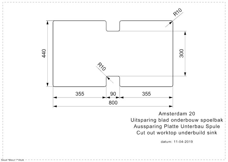 • Abmessung der Spüle: 355 x 440 + 355 x 440 mm