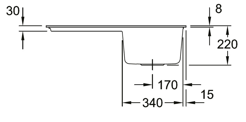 - diese Spüle ist nur als flächenbündige Spüle in Natur-/ Kunststeinplatten einbaubar; ein aufliegender Einbau oder der Einsatz als Unterbau-Spüle ist nicht möglich!