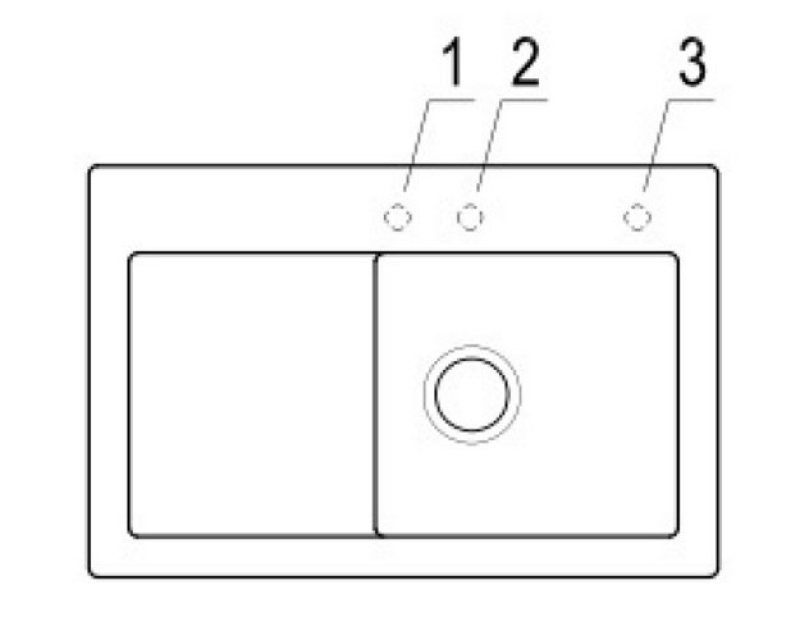 Option "Lochbohrungen durch Hersteller": Wenn Sie wünschen, dass aus Sicherheitsgründen die Lochbohrungen werksseitig vom Hersteller vorgenommen werden sollen, wählen Sie bitte diese Option. Hierfür benötigen wir von Ihnen die Nummern/Positionen des Hahnlochs/der Hahnlöcher, die V & B für Sie durchbohren soll. Bei der Spülenversion mit Handbetätigung benötigen Sie 1 Hahnlochbohrung für die Armatur, bei der Version mit Excenterbetätigung benötigen Sie 2 Lochbohrungen (Armatur und Excenter-Bedienung). Bitte beachten Sie hierzu die unten abgebildeten Maßzeichnungen, da die Positionen der Lochbohrungen bei reversiblen Spülen für die Becken-links und Becken-rechts-Versionen unterschiedlich sein können. Eine eventuelle 3. Lochbohrung für einen Seifenspender kann selbstverständlich zusätzlich gewählt werden.