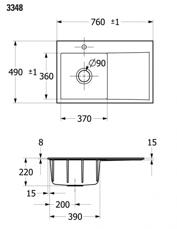 - Spülenmaße: L x B 760 x 490 mm