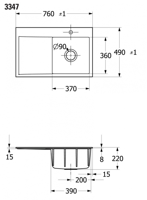- Spülenmaße: L x B 760 x 490 mm