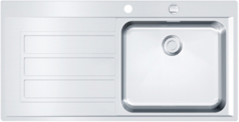 Einbauspüle EPOS SlimTop, ab 50 cm, Edelstahl glatt, Integral-Siebkorb-Excenterventil, Ausschnitt-Schablone, Becken links