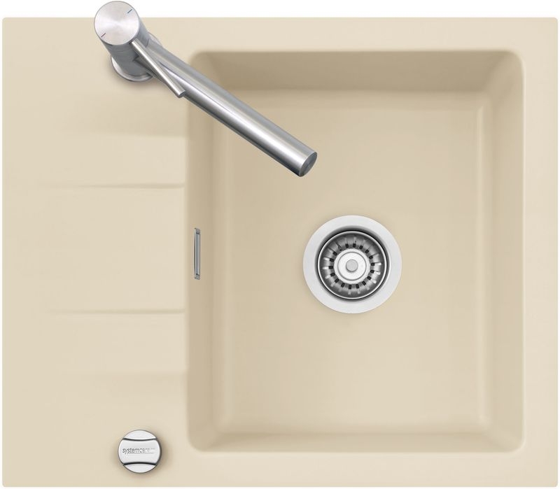 Hinweis: ist auf der oben stehenden Produktabbildung auf der Spüle ein runder Drehknebel zu sehen, handelt es sich um die Version mit Excenter-Betätigung. Eine eventuell abgebildete Armatur oder Einsatz gehört nicht zum Lieferumfang.