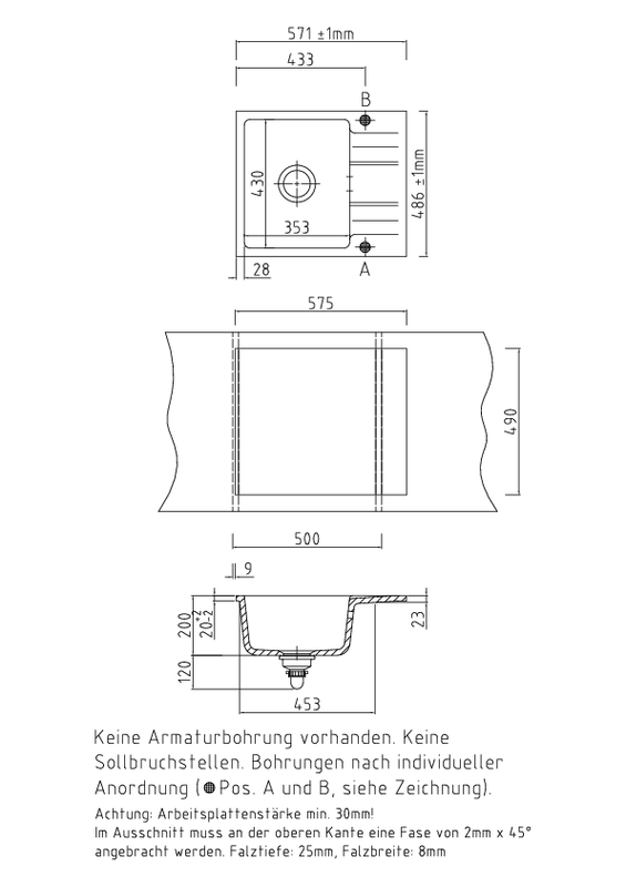 - Der Auslieferungszustand der Spüle beinhaltet KEINE Lochbohrung. Es sind keine Sollbruchstellen vorhanden; eine oder weitere Durchbohrung(en) kann nur im Werk des Herstellers Systemceram vorgenommen werden. Bitte geben Sie uns dafür exakt die von Ihnen gewünschte Position auf der Spüle an, gern auch anhand einer separaten Email, oder nehmen Sie diesbezüglich mit uns Kontakt auf. Bitte beachten Sie auch, daß Sie durch diese persönliche Positionierung der Lochbohrung einen für Sie individualisierten Artikel bestellen und erwerben, der nur für Sie speziell angefertigt wird. Diese Individualisierung und die damit verbundene nicht gegebene Möglichkeit eines anderweitigen Verkaufes durch uns kann zu einem Nicht-Wirksamwerden des Widerrufrechtes führen, welches individualisierte Produkte ausdrücklich ausnimmt. (Auf eine mit Produktmängeln zusammenhängende Reklamation hat dies selbstverständlich keinen Einfluß). Bitte sprechen Sie uns ggfs. hierauf an.
