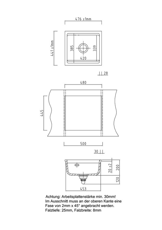 - diese Spüle ist nur als flächenbündige Spüle einbaubar (somit nur in Kombination mit Stein- oder Granitarbeitsplatten); ein Einbau als Einbau- bzw. Auflage-Spüle oder der Einsatz als Unterbau-Spüle ist nicht möglich! Es gibt von diesem Modell jedoch eine Schwester-Variante, die für den Einbau vorgesehen ist
