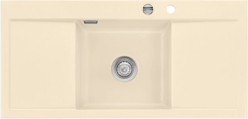 Hinweis: ist auf der oben stehenden Produktabbildung auf der Spüle ein runder Drehknebel zu sehen, handelt es sich um die Version mit Excenter-Betätigung. Eine eventuell abgebildete Armatur gehört nicht zum Lieferumfang.