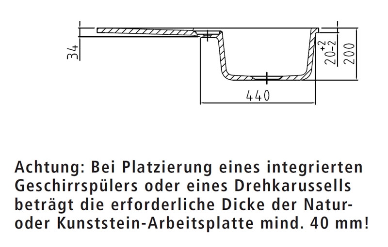 - Achtung: Bei integr. GS oder Drehkarussell Mind.-APL-Stärke 40 mm.