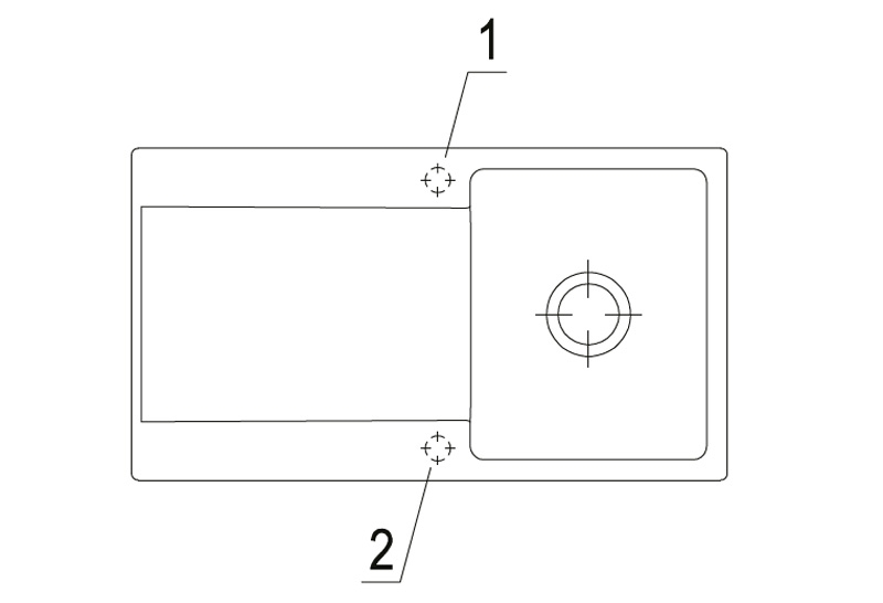 Option "Lochbohrungen durch Hersteller": Wenn Sie wünschen, dass aus Sicherheitsgründen die Lochbohrungen werksseitig vom Hersteller vorgenommen werden sollen, wählen Sie bitte diese Option. Hierfür benötigen wir von Ihnen die Nummern/Positionen des Hahnlochs/der Hahnlöcher, die V & B für Sie durchbohren soll. Bei der Spülenversion mit Handbetätigung benötigen Sie 1 Hahnlochbohrung für die Armatur, bei der Version mit Excenterbetätigung benötigen Sie 2 Lochbohrungen (Armatur und Excenter-Bedienung). Bitte beachten Sie hierzu die unten abgebildeten Maßzeichnungen, da die Positionen der Lochbohrungen bei reversiblen Spülen für die Becken-links und Becken-rechts-Versionen unterschiedlich sein können. Eine eventuelle 3. Lochbohrung für einen Seifenspender kann selbstverständlich zusätzlich gewählt werden.