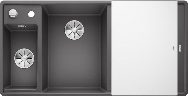 Blanco Axia III 6 S-F Silgranit PuraDur, Farbe felsgrau, Glasschneidbrett, InFino Ablauf, Becken links, 524670