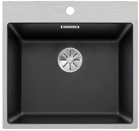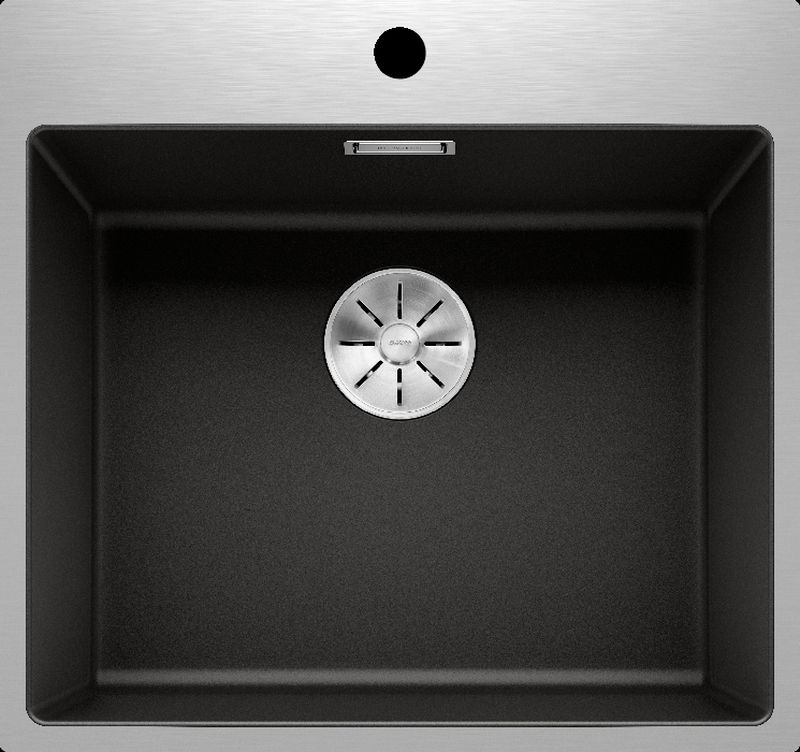 Blanco Subline 500-IF/A SteelFrame Silgranit PuraDur, Edelstahlrahmen Flachrand, ohne AFB, Farbe schwarz, InFino Ablauf, 526000