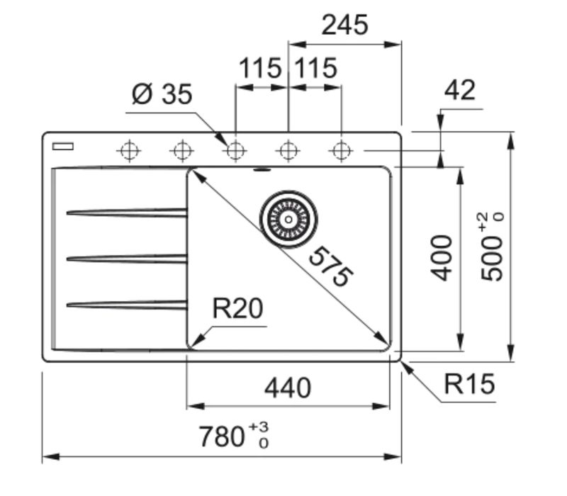 Arbeitsplattenstärke Einbau: mind. 12 mm Flächenbündig: mind. 20mm