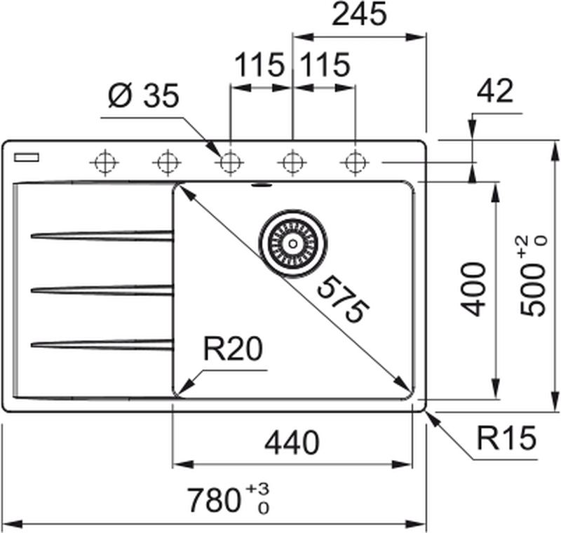 Spülenmaß: 78 x 50 cm