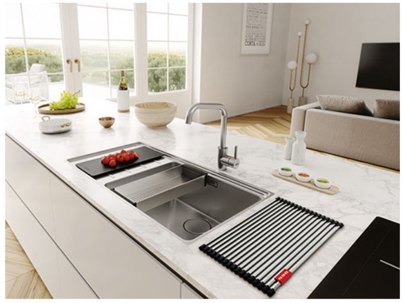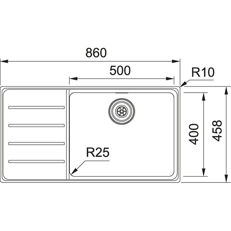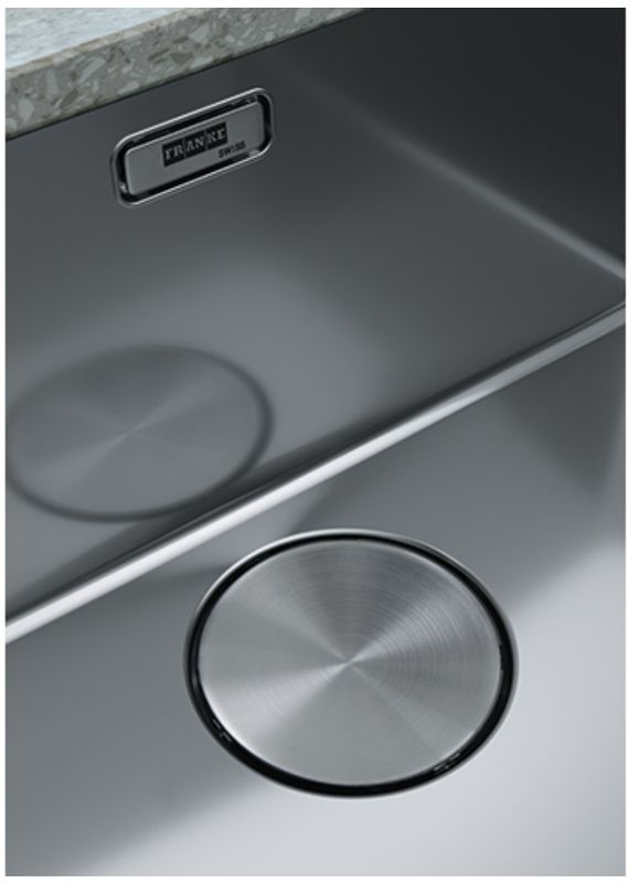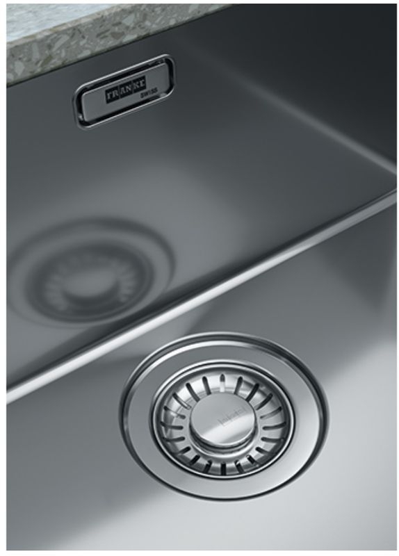 Einbauspüle Franke Mythos MYX 211, Flachrand, Edelstahl gebürstet, Becken rechts, Druckknopfventil