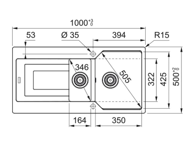• Spülenmaß: 1000 x 500 mm