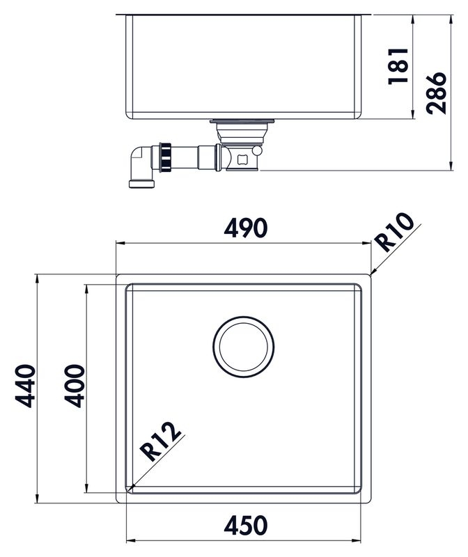 • Beckenmaß: 450 x 400 mm / Tiefe 180 mm