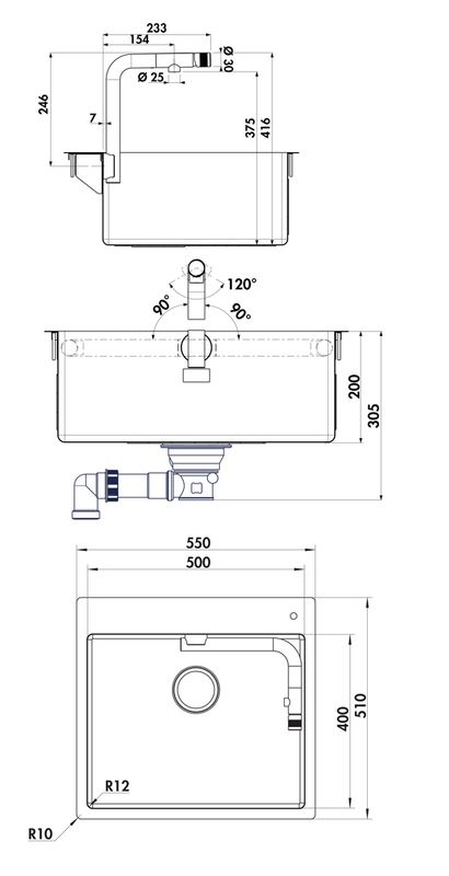 Naber Corno Turno 60, Einbauspüle mit integrierter Armatur, auch geeignet für den flächenbündigen Einbau.