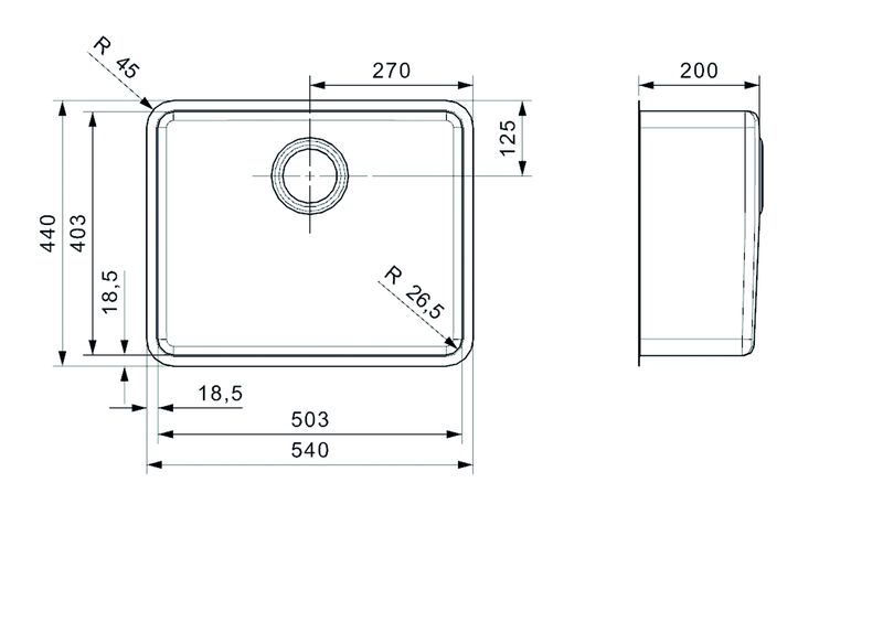 Reginox Ohio 50x40 jet black, Einbau-/Auflagespüle, R32718