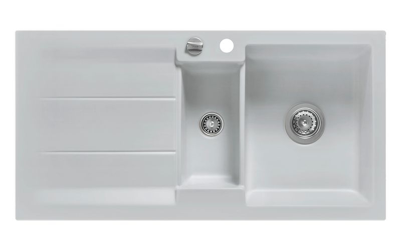 Hinweis: ist auf der oben stehenden Produktabbildung auf der Spüle ein runder Drehknebel zu sehen, handelt es sich um die Version mit Excenter-Betätigung. Eine eventuell abgebildete Armatur gehört nicht zum Lieferumfang.