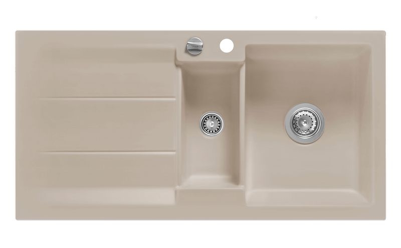 Hinweis: ist auf der oben stehenden Produktabbildung auf der Spüle ein runder Drehknebel zu sehen, handelt es sich um die Version mit Excenter-Betätigung. Eine eventuell abgebildete Armatur gehört nicht zum Lieferumfang.