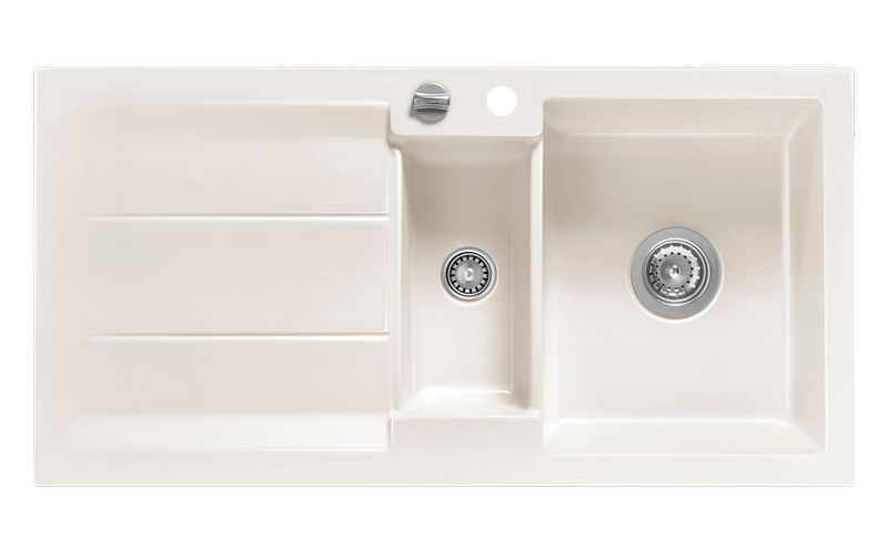 Hinweis: ist auf der oben stehenden Produktabbildung auf der Spüle ein runder Drehknebel zu sehen, handelt es sich um die Version mit Excenter-Betätigung. Eine eventuell abgebildete Armatur gehört nicht zum Lieferumfang.