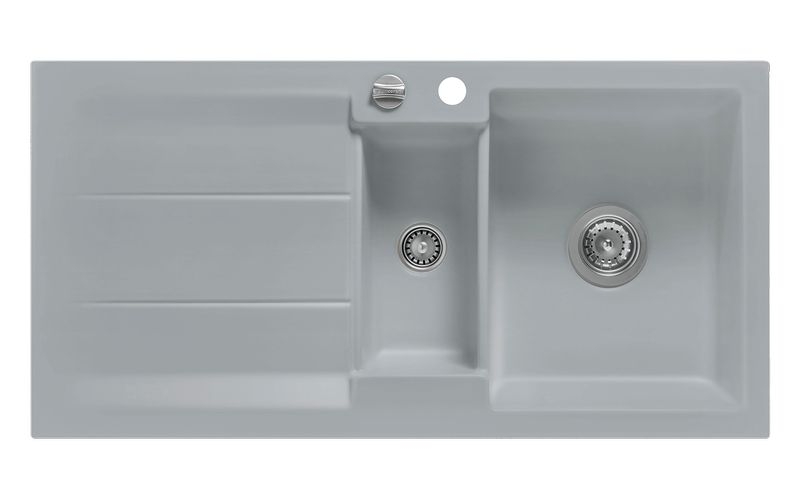 Hinweis: ist auf der oben stehenden Produktabbildung auf der Spüle ein runder Drehknebel zu sehen, handelt es sich um die Version mit Excenter-Betätigung. Eine eventuell abgebildete Armatur gehört nicht zum Lieferumfang.