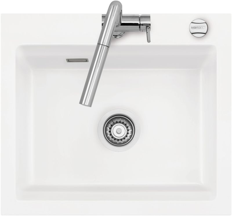 Hinweis: ist auf der oben stehenden Produktabbildung auf der Spüle ein runder Drehknebel zu sehen, handelt es sich um die Version mit Excenter-Betätigung. Eine eventuell abgebildete Armatur oder Einsatz gehört nicht zum Lieferumfang.