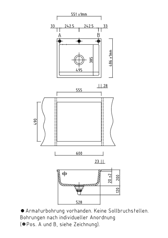 • Der Auslieferungszustand der Spüle beinhaltet eine Lochbohrung für die Armatur. Es sind keine Sollbruchstellen vorhanden; eine oder weitere Durchbohrung(en) kann nur im Werk des Herstellers Systemceram vorgenommen werden. Bitte geben Sie uns dafür exakt die von Ihnen gewünschte Position auf der Spüle an, gern auch anhand einer separaten Email, oder nehmen Sie diesbezüglich mit uns Kontakt auf. Bitte beachten Sie auch, daß Sie durch diese persönliche Positionierung der Lochbohrung einen für Sie individualisierten Artikel bestellen und erwerben, der nur für Sie speziell angefertigt wird. Diese Individualisierung und die damit verbundene nicht gegebene Möglichkeit eines anderweitigen Verkaufes durch uns kann zu einem Nicht-Wirksamwerden des Widerrufrechtes führen, welches individualisierte Produkte ausdrücklich ausnimmt. (Auf eine mit Produktmängeln zusammenhängende Reklamation hat dies selbstverständlich keinen Einfluß). Bitte sprechen Sie uns ggfs. hierauf an.