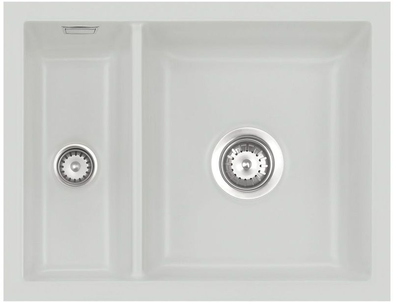 Hinweis: ist auf der oben stehenden Produktabbildung auf der Spüle ein runder Drehknebel zu sehen, handelt es sich um die Version mit Excenter-Betätigung. Eine eventuell abgebildete Armatur oder Einsatz gehört nicht zum Lieferumfang.