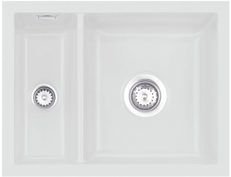 Hinweis: ist auf der oben stehenden Produktabbildung auf der Spüle ein runder Drehknebel zu sehen, handelt es sich um die Version mit Excenter-Betätigung. Eine eventuell abgebildete Armatur oder Einsatz gehört nicht zum Lieferumfang.