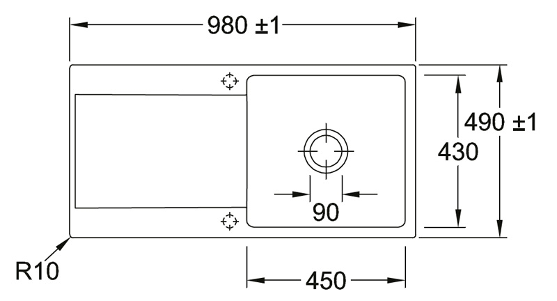 - Spülenmaße: L x B 980 x 490 mm