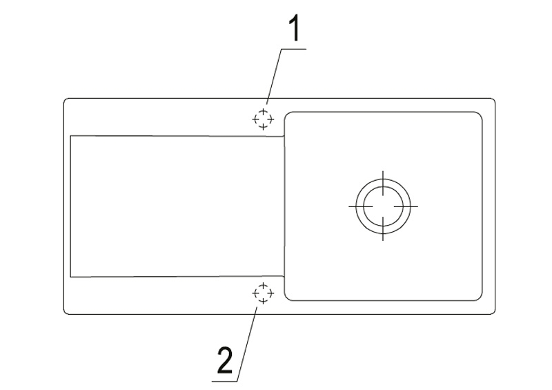 Option "Lochbohrungen durch Hersteller": Wenn Sie wünschen, dass aus Sicherheitsgründen die Lochbohrungen werksseitig vom Hersteller vorgenommen werden sollen, wählen Sie bitte diese Option. Hierfür benötigen wir von Ihnen die Nummern/Positionen des Hahnlochs/der Hahnlöcher, die V & B für Sie durchbohren soll. Bei der Spülenversion mit Handbetätigung benötigen Sie 1 Hahnlochbohrung für die Armatur, bei der Version mit Excenterbetätigung benötigen Sie 2 Lochbohrungen (Armatur und Excenter-Bedienung). Bitte beachten Sie hierzu die unten abgebildeten Maßzeichnungen, da die Positionen der Lochbohrungen bei reversiblen Spülen für die Becken-links und Becken-rechts-Versionen unterschiedlich sein können. Eine eventuelle 3. Lochbohrung für einen Seifenspender kann selbstverständlich zusätzlich gewählt werden.